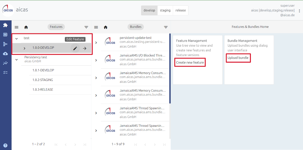 Upload bundles, create and edit features. Open in new tab to see full-size image.¶