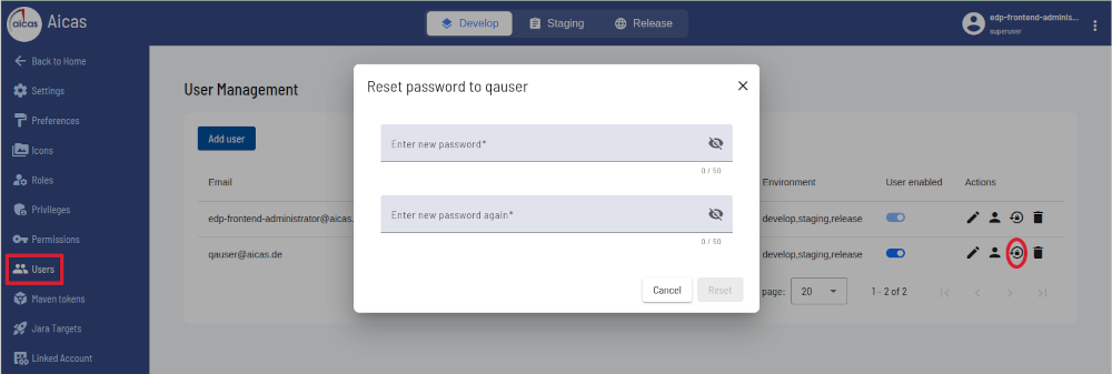 Once new users are added, their information can be edited and the environments assigned to them can be changed. Administrators are also able to change or add roles to specific users.